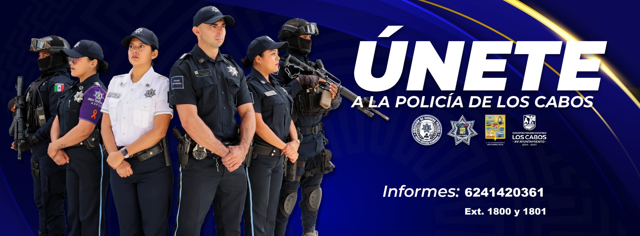 El H. XV Ayuntamiento de los Cabos, B.C.S. por medio de la Dirección General de Seguridad Pública, Policía Preventiva y Tránsito Municipal a través de su Dirección de Servicio Profesional de Carrera Policial Municipal y con fundamento en la Ley General del Sistema Nacional de Seguridad Pública, Ley del Sistema Estatal de Seguridad Pública de Baja California Sur, el Reglamento del Servicio Profesional de Carrera Policial de la Dirección General de Seguridad Pública, Policía Preventiva y Tránsito Municipal de Los Cabos, emite la siguiente: